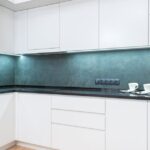 - Minimalizm: szczelina 8 mm, front RAL 9016 (biały) z mikrofazą 1 mm.